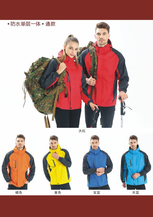 沖鋒衣,外文名Jackets,又名Outdoor Jackets,音譯為夾克,戶外運動必備裝備之一。沖鋒衣之所以能成為所有戶外愛好者的首選外衣,是由其全天候的功能決定的。沖鋒衣的 英語為“Jackets”或者“Outdoor Jackets”,直譯過來就是“夾克”,沖鋒衣并不神秘,就是夾克衫,但由于這種功能性服飾從國外傳到中國時,國人為了和普通衣服區(qū)別開來,就從其“意譯”上入手,叫做“沖鋒衣”。越來越多的企業(yè)把這一種服裝當(dāng)做職業(yè)服裝來使用,比如經(jīng)常在戶外工作的人們。在服裝的后背或前胸印繡上本企業(yè)的LOGO或標(biāo)識這樣就具備了宣傳及展示企業(yè)形象的效果。